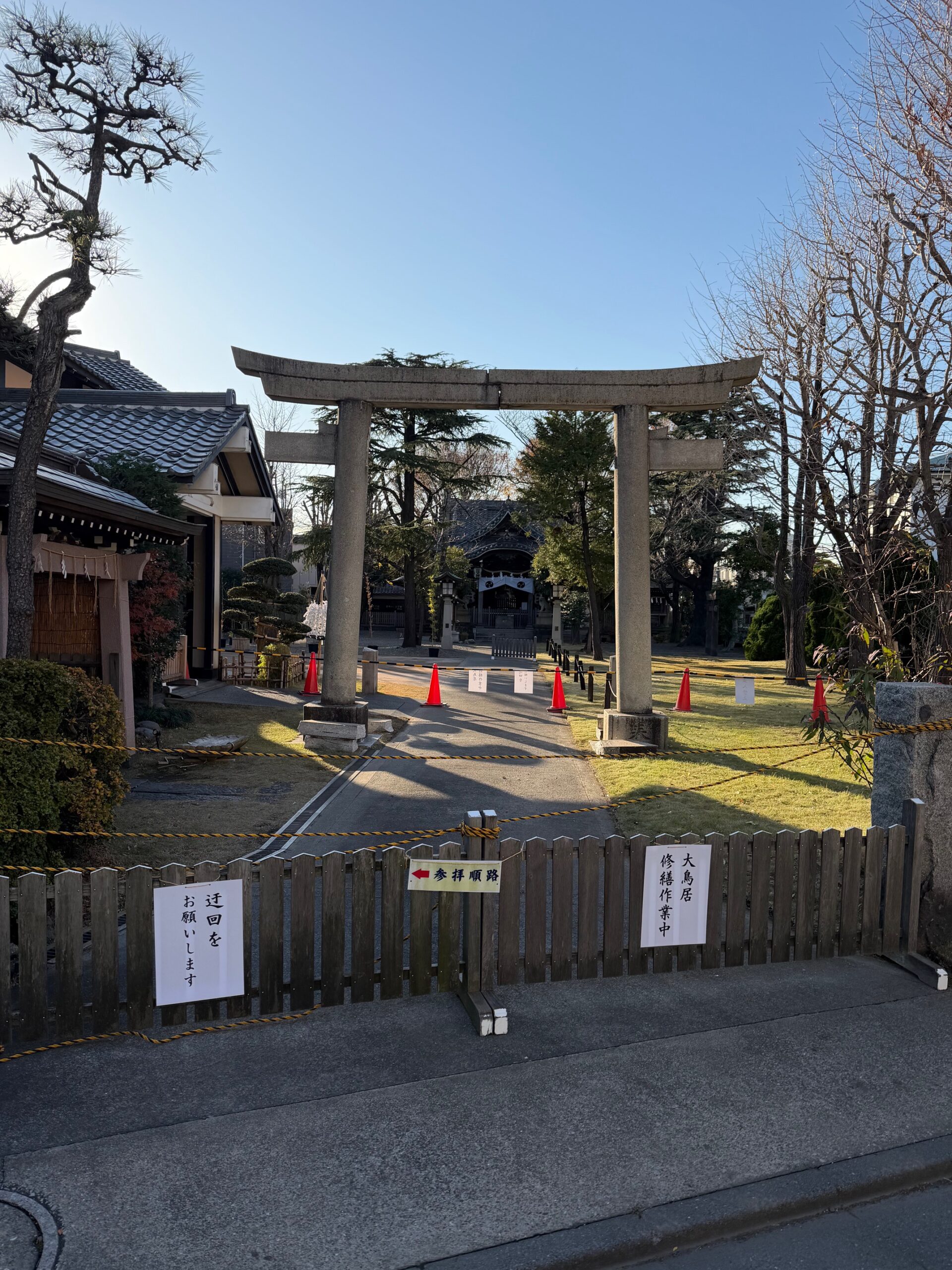 大鳥居周辺は立入禁止としておりますので、迂回してのご参拝をお願い致します。